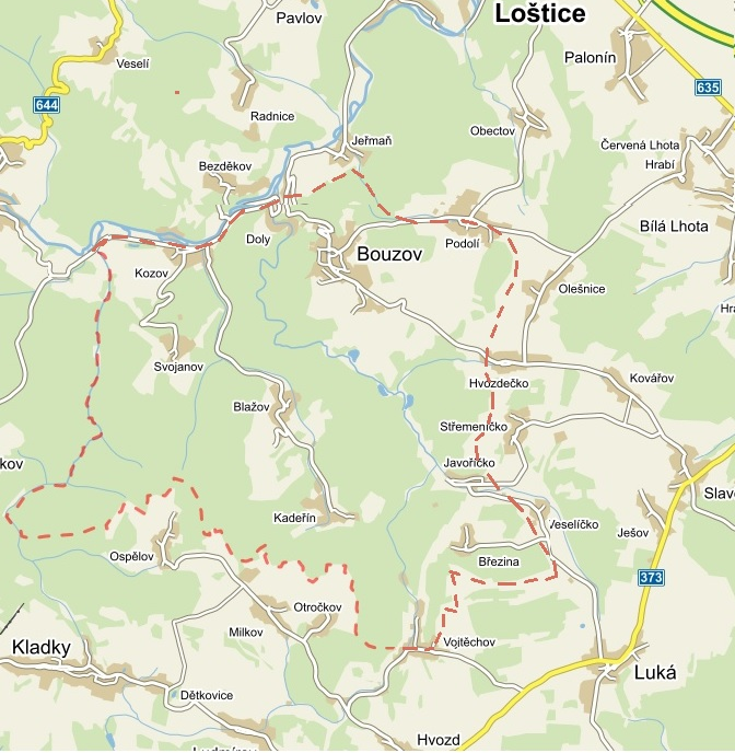 Následující schéma zobrazuje územní vymezení LDO Bouzov.